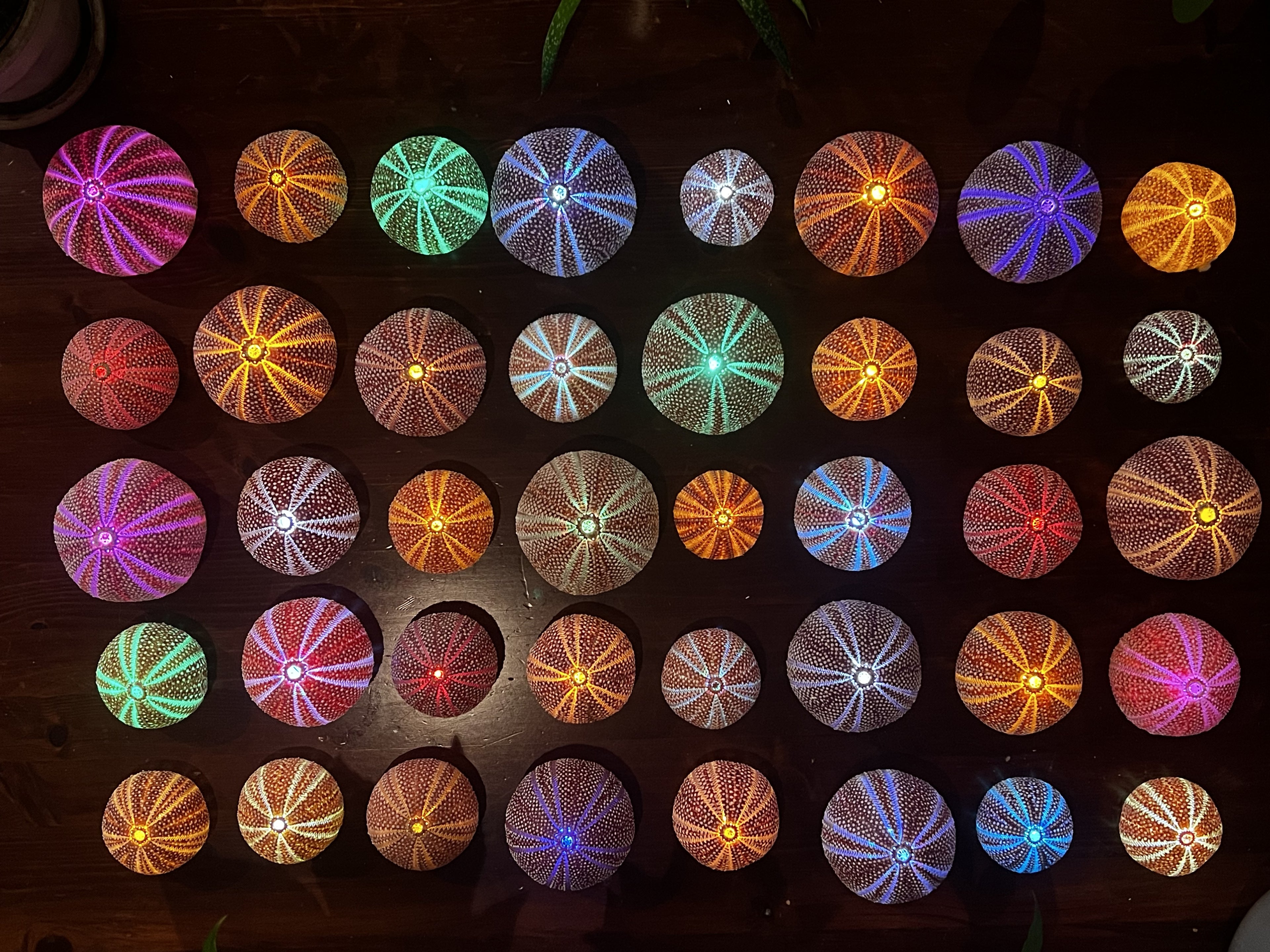 They go diving in arctic waters and freezing temperatures to locate and capture the urchins. Then they are made into Lofotlys by removing the spikes, cleaning them and finally drilling a hole for a small Led light. It’s all worth it when they see the beauty of nature light up.