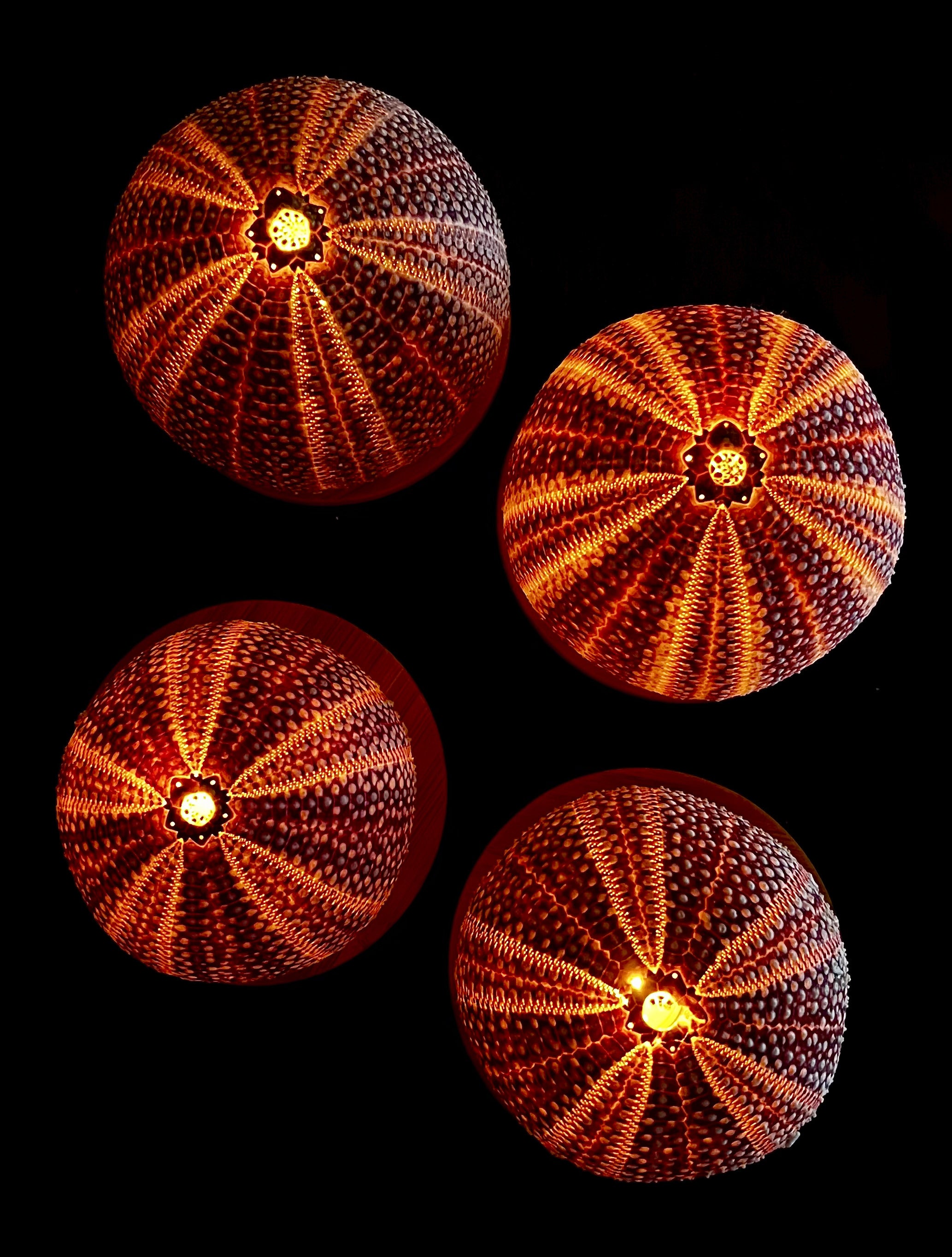 The sea urchins eat and destroy the much needed kelp forest, and are considered an unwanted species. Kelp is considered "Norways rain forrest" since it produces so much oxygen and the sea urchins have already removed 50 % of the Norwegian kelp forrest. If you buy a Lofotlys you not only get an exotic decorative light, but you also contribute to important environmental work