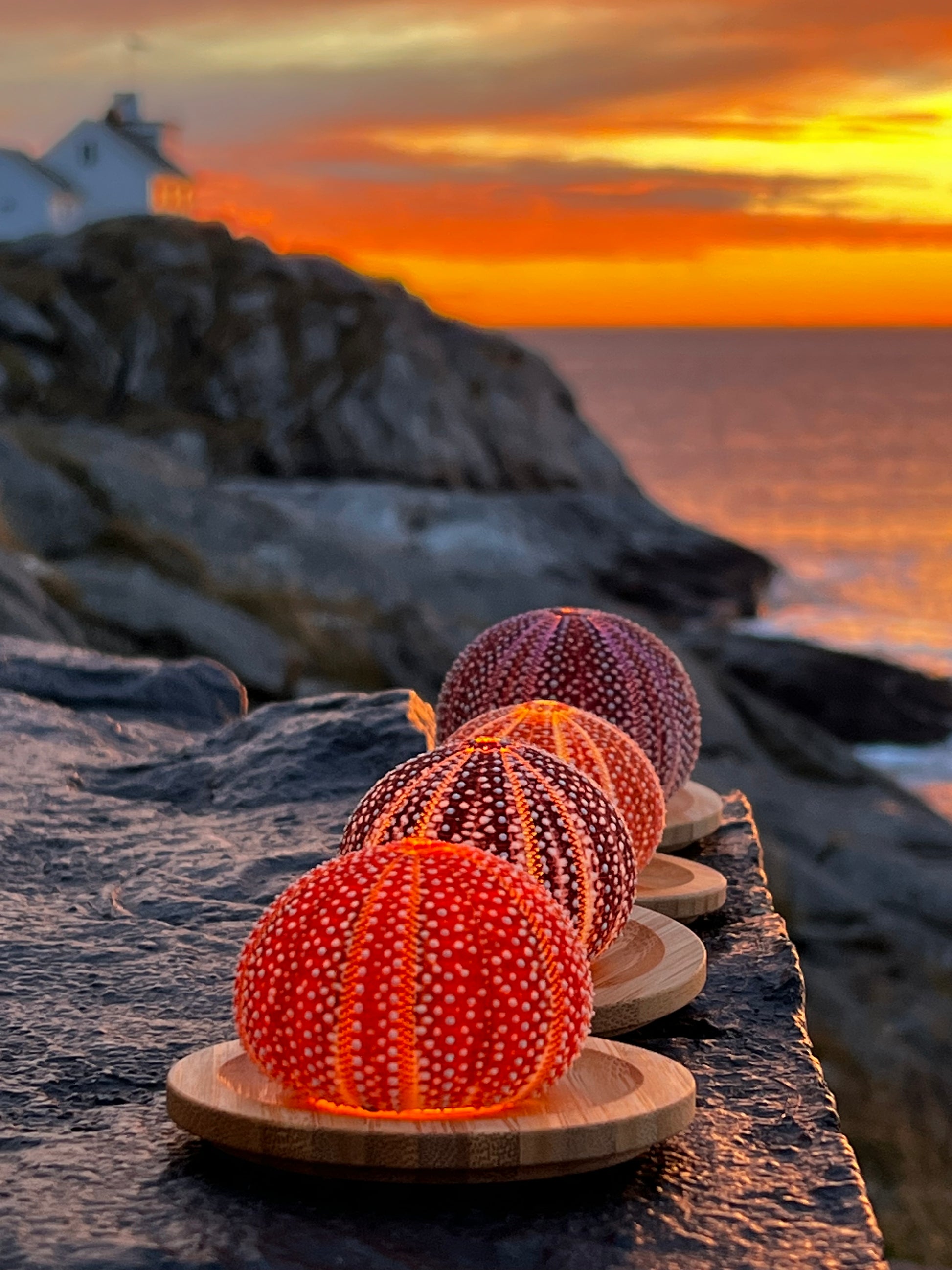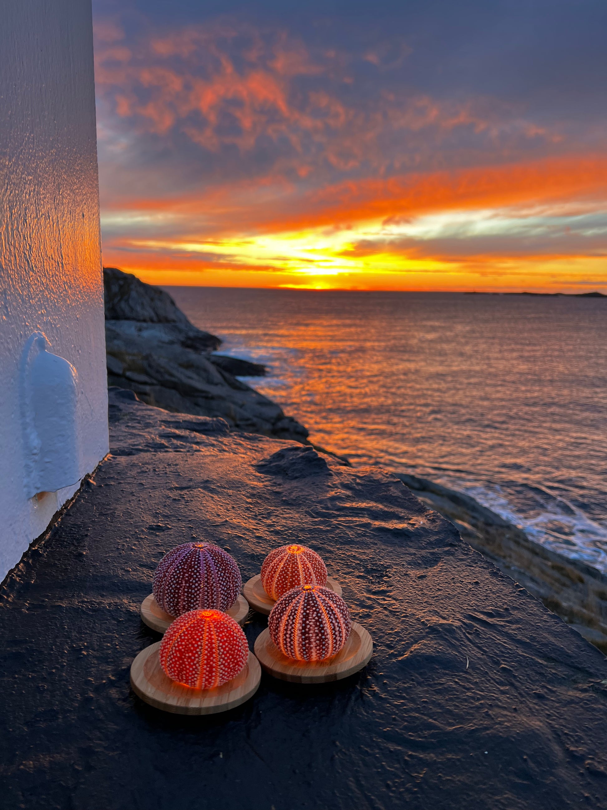Buy 4 medium Lofotlys in this limited deal, and get almost 400 kr discount. The medium Lofotlys are between 6 and 8 cm and are well suited as decoration on tables or in windows. All Lofotlys´ comes with a small LED-light and a plate.